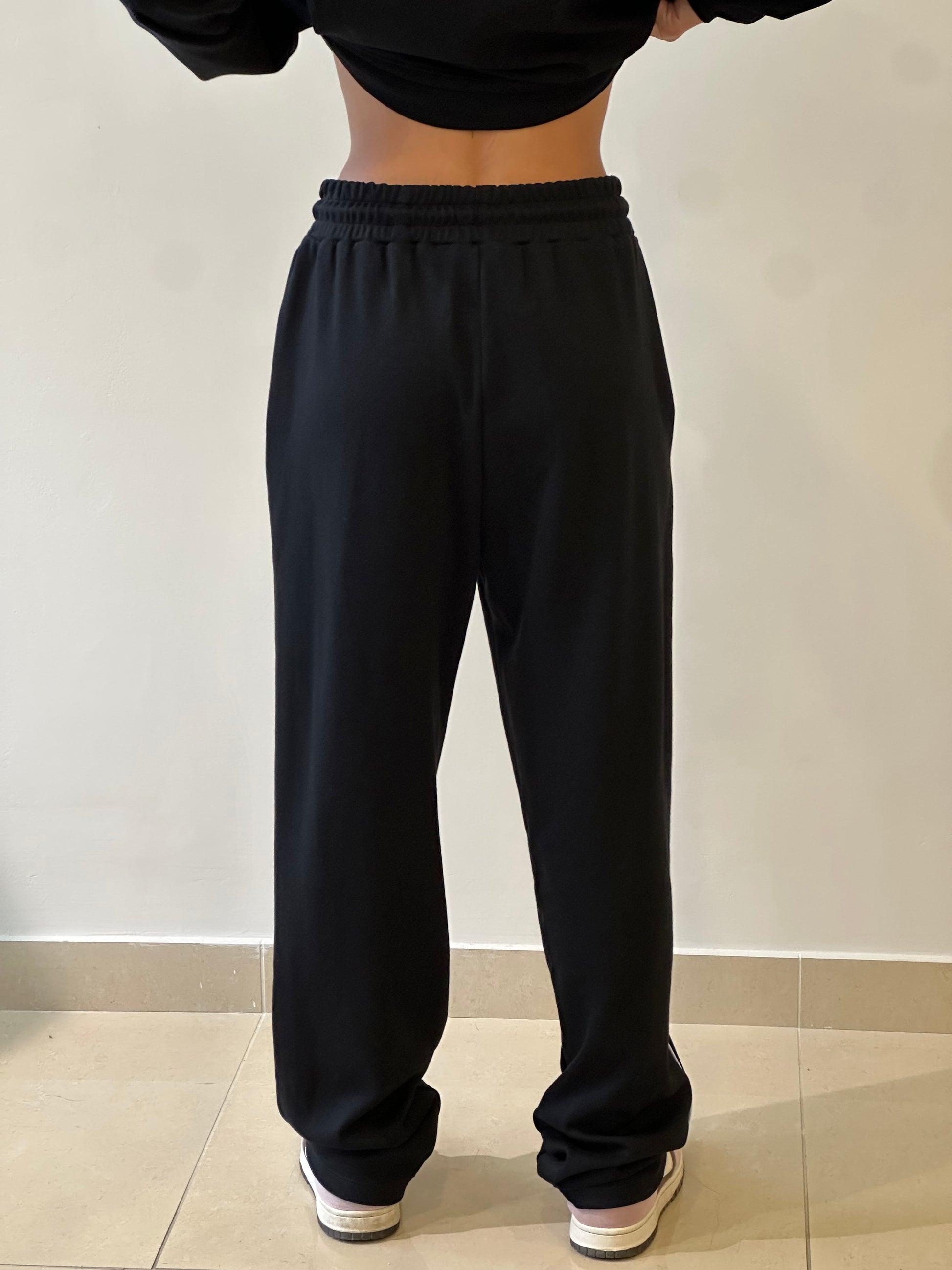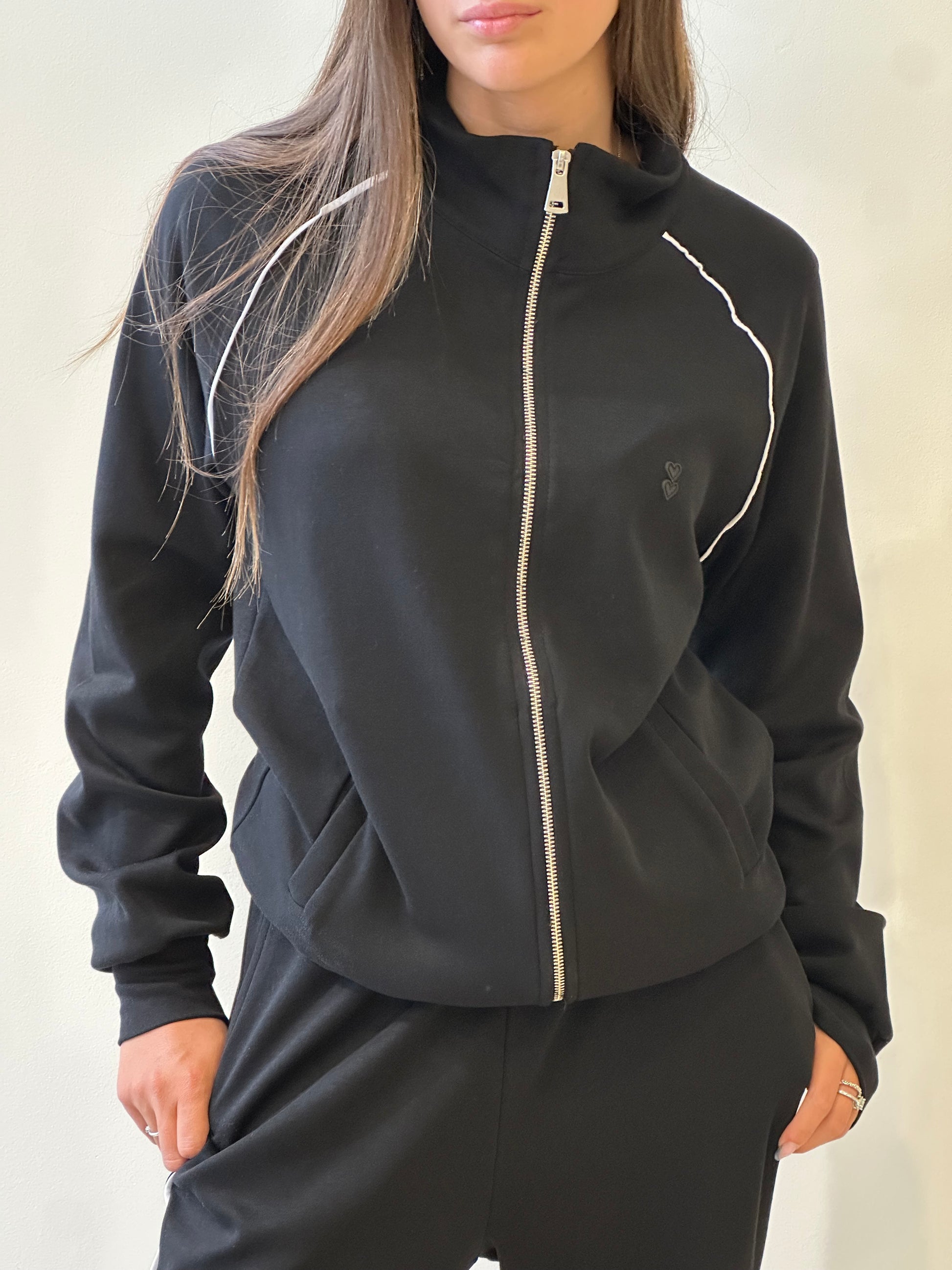 COMPLETO PANTALONE E FELPA CON CERNIERA CON DETTAGLIO STRISCIA SOTTILE BIANCA