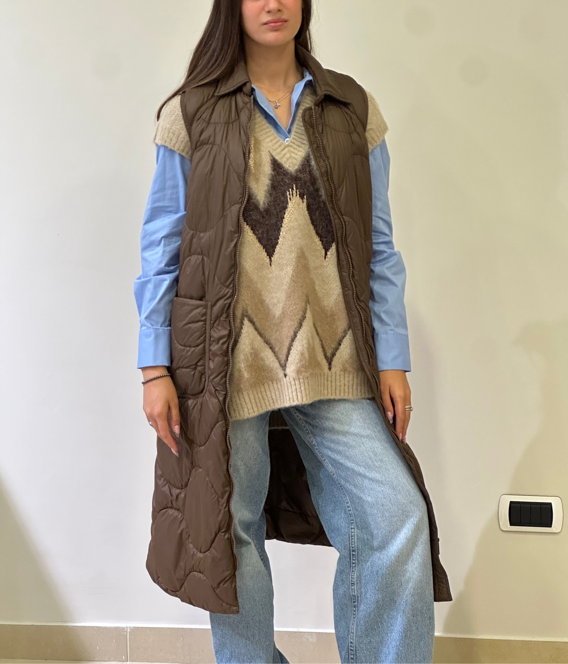 Con il nostro Smanicato moro, puoi goderti il calore e la comodità di un cappotto senza dover sacrificare la tua libertà di movimento. Il design senza cappuccio offre un look elegante e versatile, perfetto per ogni occasione. Realizzato con materiali di alta qualità e con un'attenzione ai dettagli, questo smanicato ti terrà al caldo e alla moda.